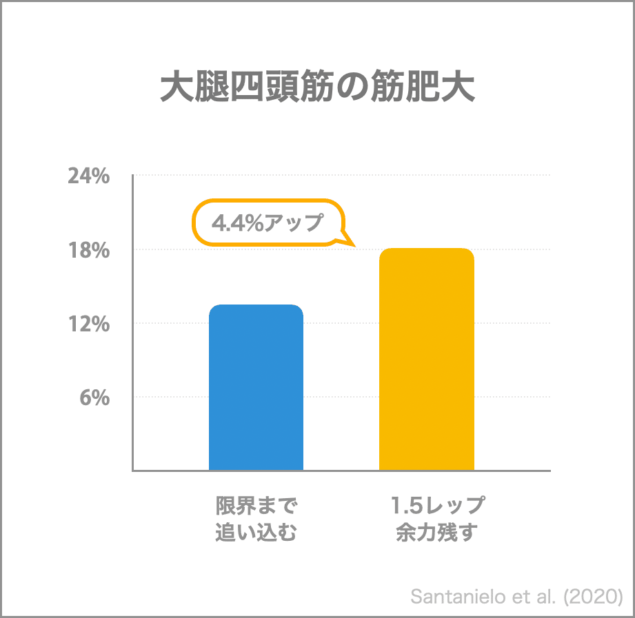 こんにちは、AthleteBodyの八百です! 毎週金曜日、フィットネス関連の情報をお送りしています。ぜひお付き合いください。 今日は「限界まで追い込まない方が筋肥大効果が高くなる」という話です。 筋肉を成長させるには、トレーニングで刺激を与える必要があります。 では、筋肉を最大限に成長させるには限界まで追い込まないといけないかというと、必ずしもそうではありません。最近では追い込まなくても同等以上の効果が得られると示す知見が増えています。 2020年の研究では、実際に脚のトレーニングを行って筋肉の変化を測定しました。 片方の脚は限界まで追い込み、もう一方の脚は限界の1.5レップほど手前で止めるという内容です。 このトレーニングを10週間続けたところ、グラフのような結果になりました。 余力を残した場合で大腿四頭筋の断面の増え幅が4.4%大きくなりました。これを統計的に分析したところ、「有意差」ではないという判定でした。 つまり、このデータから「余力を残した方が筋肥大効果が大きくなる」と言うことはできません。しかし、余力を残したら筋肥大効果が小さくなるという結果でなかったことは確かです。 筋肥大を追求している人は、苦しいトレーニングに負けないことを重視している人が多くいます。自分の限界に挑戦する気持ちは価値あるものですが、限界まで追い込んだからと言って、効果が高くなるとは限りません。 トレーニングが苦しくて続けるのが難しいときは、内容をゆるめてもいい可能性があります。筋肥大のためにやっているのか、自分を追い込むためにやっているのか立ち止まって考えてみると良いかもしれません。 それではまた次のメルマガで! |