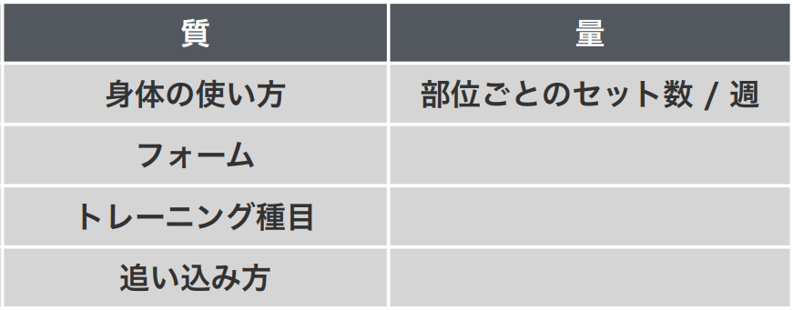 こんにちは、AthleteBodyの八百です! 毎週金曜日、フィットネス関連の情報をお送りしています。ぜひお付き合いください。 今日のテーマは弱点部位の鍛え方です。 しばらくトレーニングを続けていると、スムーズに筋肉が大きくなる部位と、なかなか成長してくれない部位が出てくるものです。 バランスの良い体形づくりという意味では、こういう弱点部位をいかに確実に筋肥大させるかが重要になります。 特定の部位が成長しない場合、その原因はいくつか考えられるので、その時の状況によって対策は分かれます。 答えを出すための入り口として、トレーニングを「質と量」に分けて考えるのがオススメです。 トレーニングの質に関しては、まず自分のフォームを確認したり、トレーニング種目を変えてみて対象筋への刺激が高まるか試してみるのは良いかもしれません。 トレーニングの量については、その部位を使うセット数で考えるのが分かりやすいと思います。肉体改造のピラミッドでは1週間あたり10〜20セットをオススメしています。 AthleteBodyの大林は腕の筋量が弱いと感じていた時期があって、対策として腕の種目数を増やしました。そのぶんセット数も増えることになります。 明確に腕の成長が見えますね。 ここで重要なのが、トレーニング全体での疲労管理です。腕のセット数を増やすと、そのぶん疲労も生まれます。回復が追いついていればいいのですが、全身の筋肥大を目指してトレーニングしていると回復に余裕がなくなることは少なくありません。 そこで、大林は腕のトレーニングを増やした代わりに他の部位の種目数を減らしました。大林はこうやって、腕に限らず特定の部位に集中する期間を作ることで、弱点を強化してきました。 フォームやトレーニング種目に変更の余地が感じにくい人は、疲労に注意しながらセット数を増やすという方法が当てはまるかもしれません。 ただ、すでにたくさんのセット数をこなしているのに弱点に悩む人もたくさんいますよね。そういう場合には、フォームや種目選びで改善する可能性もあります。 このトピックはAthleteBodyのオンラインサロン「ボディビル道場」で取り上げたものです。セミナー内では鈴木雅さんが、フォームや種目選びだけで解決しない場合の「トレーニングの質」の改善方法についても語ってくれました。(今回は特に充実したセミナーでした。道場メンバーの方はぜひご覧ください。) 弱点部位に不安やイライラを感じている人にとって、答えに近づくヒントになれば幸いです。 |