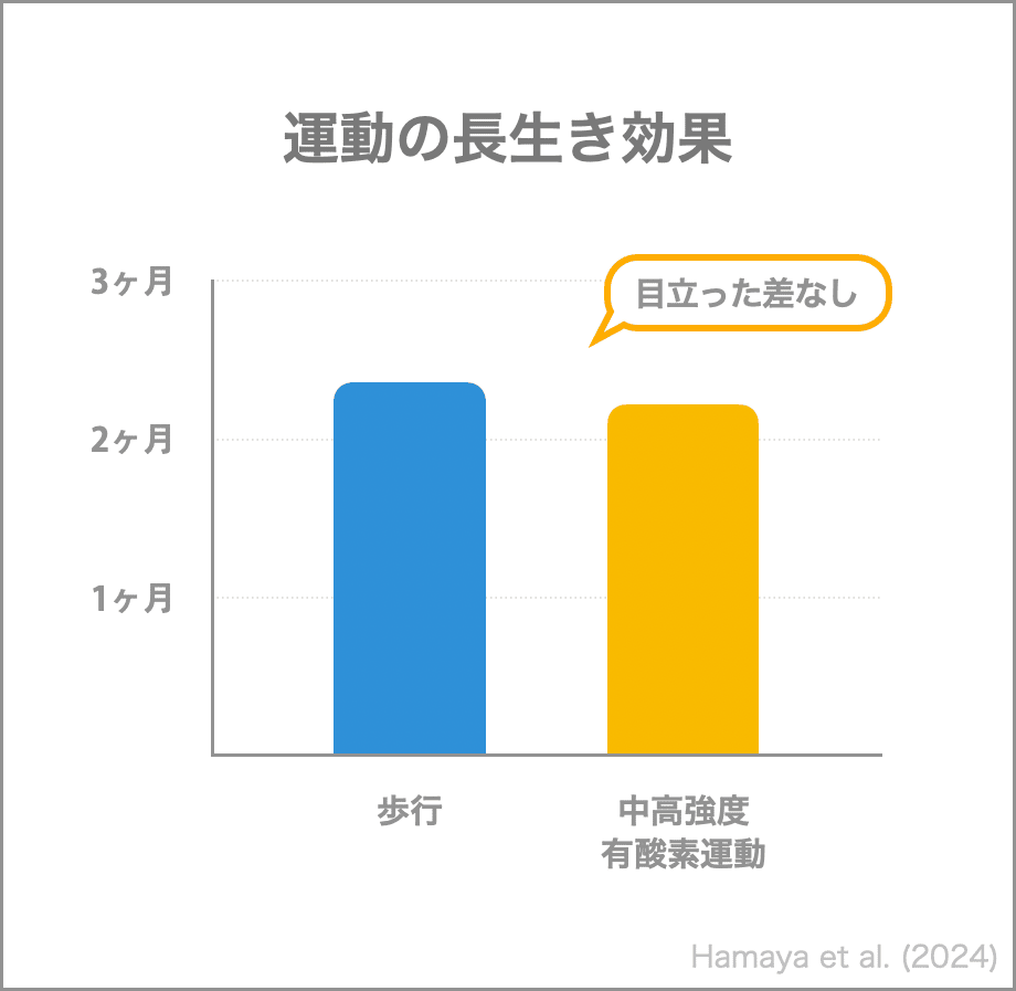 こんにちは、AthleteBodyの八百です! 毎週金曜日、フィットネス関連の情報をお送りしています。ぜひお付き合いください。 今日のテーマは「運動による長生き効果」です。 健康のためには運動が大切です。特に筋力と心肺機能が高い人は寿命が長く、高齢になっても健康を保ちやすいと言われます。 つまり、筋トレと有酸素運動ですね。 このメルマガを読んでくれる人は、筋トレに関しては十分に習慣化できていたり、沼から抜け出せなくて困っているくらいかもしれません。 有酸素運動についてはどうでしょう? 今日紹介する研究では、有酸素運動の強度が寿命に与える影響が調べられました。 高齢の女性を対象に運動習慣についてデータを取って、約9年間経過を追いました。結果を見ると、運動習慣のある人は運動をしない人より長生きする傾向がありました。 また、その長生き効果は運動強度によって変わらず、歩くだけで得られるようです。 有酸素運動と言うと、心拍数が高くなって呼吸が苦しくなるくらいキツい運動というイメージを持つ人もいるかと思います。 実際には歩行も有酸素運動の一種で、健康や長生きに確かな効果があり、科学的エビデンスも積み上がっています。 今回の研究で歩行量の少なかった人は1日2000歩程度、最も多かった人は10000歩程度でした。そして、9年の調査で2ヵ月強の差が認められました。 おそらく、歩く量を増やすと健康効果はさらに高まると考えられます。以前のメルマガでは、16000歩までは死亡リスクが下がると示す知見を紹介しました。 今日のポイントは歩くことの健康効果は強く、強度の高い運動を比べても劣らないということです。 ご自身に限らず、もし周囲に運動嫌いの人がいれば「歩くだけで健康になる」と伝えてもらうと身体を動かすことへのハードルが下がって良いかもしれません。 これを書いている八百は、運動が苦手な両親に「筋トレが続かなくてもいい、とにかく歩け」とよく話しています。 それではまた次のメルマガで! |