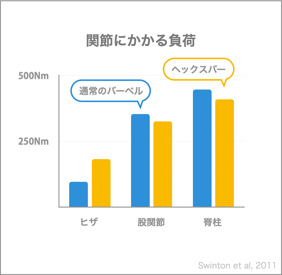 こんにちは、AthleteBodyの八百です! 毎週金曜日、フィットネス関連の情報をお送りしています。ぜひお付き合いください。 今日はデッドリフトのバリエーションについてお話しします。 ヘックスバーというトレーニング用品をご存じでしょうか。六角形のバーベルで、主にデッドリフトに使われます。トラップバーと呼ばれることもあります。 ヘックスバーを使ったデッドリフトでは、自分が六角形の中に入ってウェイトを引き上げます。 通常のデッドリフトとの一番の違いは「身体に対するウェイトの位置」です。 通常のバーベルではウェイトが身体の前に来るのに対して、ヘックスバーでは身体の横に来ます。これによって負荷のかかり方が変わります。 通常のバーベルとヘックスバーでデッドリフトを行ったときの負荷のかかり方を比較した研究があり、以下のような結果が報告されました。 どちらのデッドリフトも股関節と脊柱に大きな負荷がかかり、ここには大きな違いがありませんでした。明確な違いが出たのはヒザで、ヘックスバーでは通常のバーベルより負荷が大きくなることが分かりました。 ヘックスバーを使うと、股関節と脊柱まわりの筋肉への効果はそのままに、大腿四頭筋への刺激も少し期待できそうです。 また、トレーニング効果とは別に、フォームを習得しやすいと感じる人もいるはずです。 通常のデッドリフトはバーベルを身体の前に置くので、ヒザを自由に動かせません。この姿勢から股関節を動かすコツをつかむまで苦労する人が多いです。 ヘックスバーではバーベルに動きが邪魔されないので、動作が簡単に感じられるかもしれません。 通常のナロースタンスのデッドリフトより簡単で、股関節や脊柱まわりへの刺激は同水準で、ヒザまわりへの刺激は高まるとしたら、良い選択肢だと言えそうです。 ヘックスバーを使える環境にいる人は、ちょっと試してみると何か発見があるかもしれません。 では、また次回のメルマガで! |